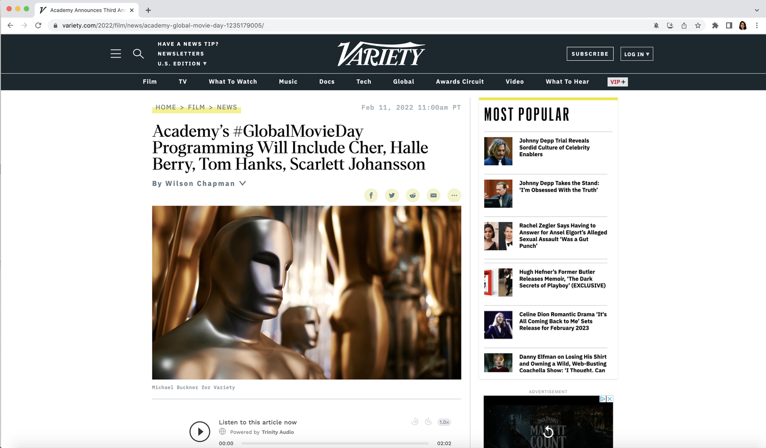 The Academy of Motion Picture Arts and Sciences held its third annual Global Movie Day, online across the Academy’s social channels.